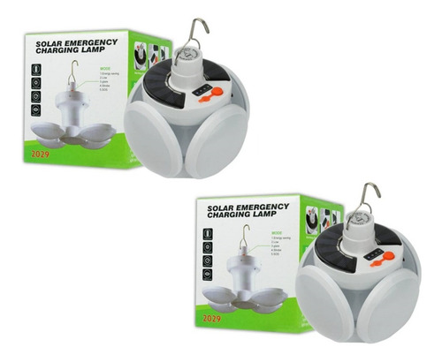 2 X Lampara Camping Solar Emergencia 15w Articulada Outdoor Blanco