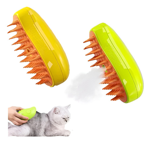 📝 Producto: 3 En 1 Cepillo De Vapor Para Perro, Masaje Peine Para Gatos Color Verde/amarillo