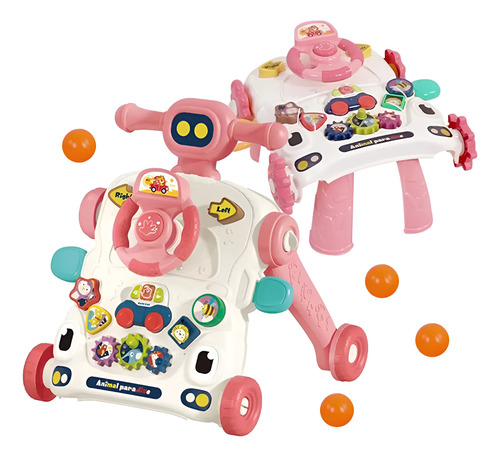 Andador 3 En 1 Para Bebés Con Mesa De Actividades Rosa Multicolor