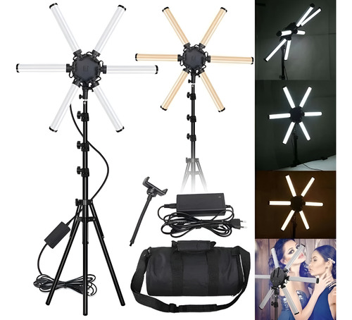 Aro De Luz Led 65cm Estrella 6 Tubos Iluminación Fotografía Negro