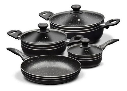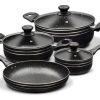 Batería De Ollas Antiadherente 7 Piezas Home Elements Stone Negro