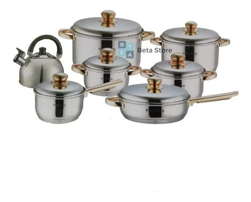 📝 Producto: Bateria De Ollas Juego De 13 Piezas Con Tetera Plateado