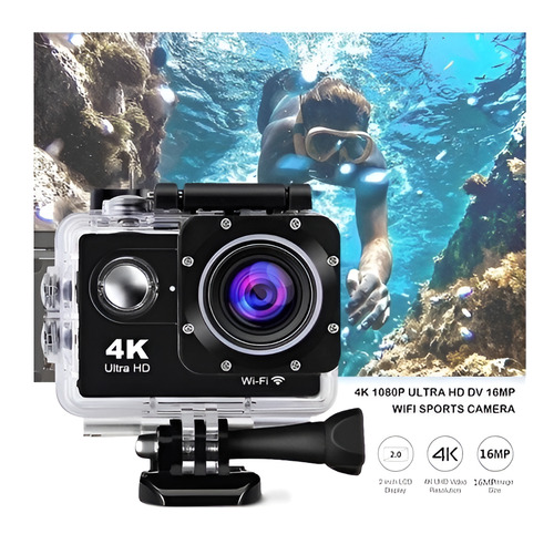 Camara 4k Deportiva Wifi Sumergible Casco Moto Con Control Color Negro