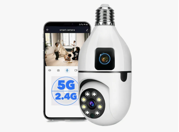 Cámara De Seguridad Bombillo Robot 2 Lentes Wifi 2.4/5g V380 Color Blanco