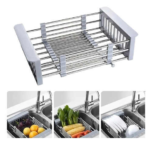 📝 Producto: Cesta Canasta Extensible Lavaplatos Escurridor Alimentos Color Plateado