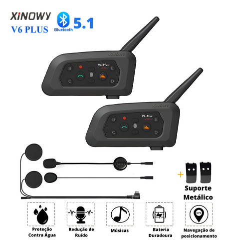 Comunicador De Casco V6 Plus, 2 Unidades/par, Bluetooth 5.1