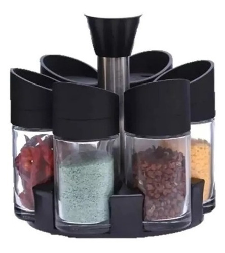 Condimentero Giratorio Organizador Especias 6 Piezas Cocina Negro