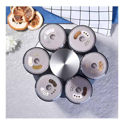 📝 Producto: Condimentero Giratorio Para Especias Organizador Cocina X6 Color Negro