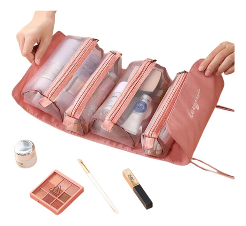 Cosmetiquera Desenrrollable Bolsa Para Maquillaje Rosa Liso