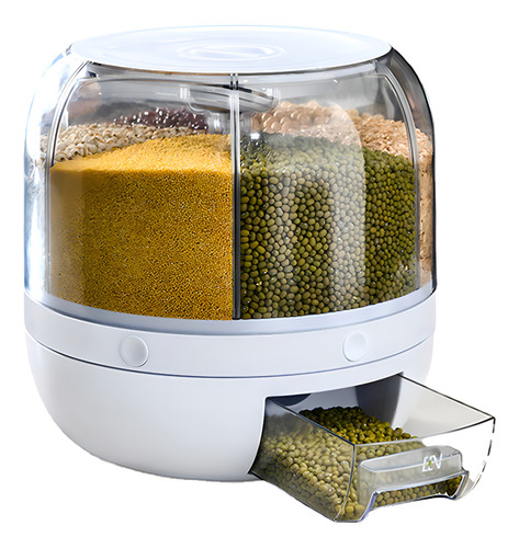 Dispensador Giratório De Grãos Cadencia 6 En 1 8l Blanco 360° Cocina