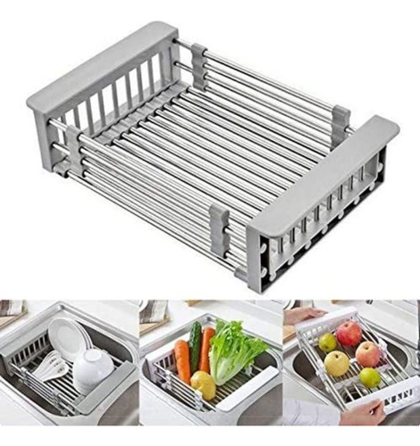 Escurridor De Platero Expandible Acero Inoxidable Lavaplatos Plateado