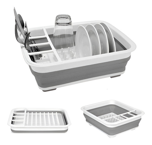 Escurridor De Platos Plegable De Plástico Practico Portatil Color Gris