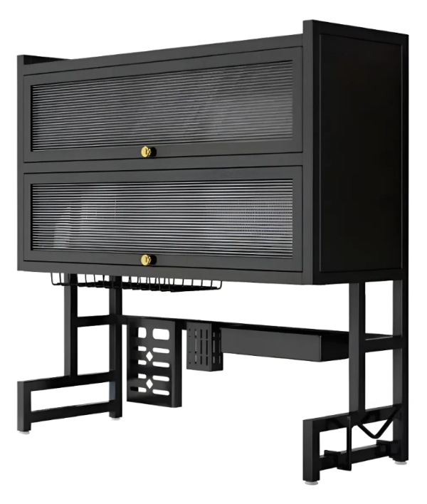 Escurridor Platos Cocina Con Gabinete Doble Organizador De Loza Color Negro
