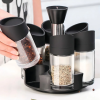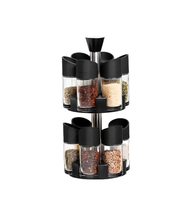 Especiero Giratorio 12 Piezas Acrílico Negro Con 12 Frascos Soporte Toallas
