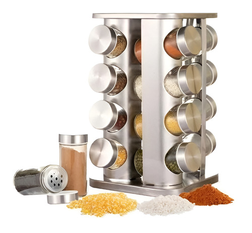 Especiero Giratorio 16 Frascos Cocina Condimentos Color Gris