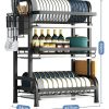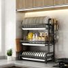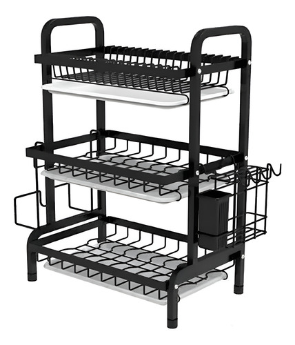 Estante Escurridor De Cocina Para Platos En Hierro 3 Niveles Color Negro