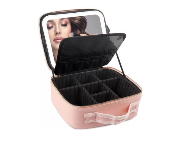 Estuche De Cosméticos Viaje Portátil Con Luz Led Maquillaje Cosmetiquera De Viaje Color Rosa