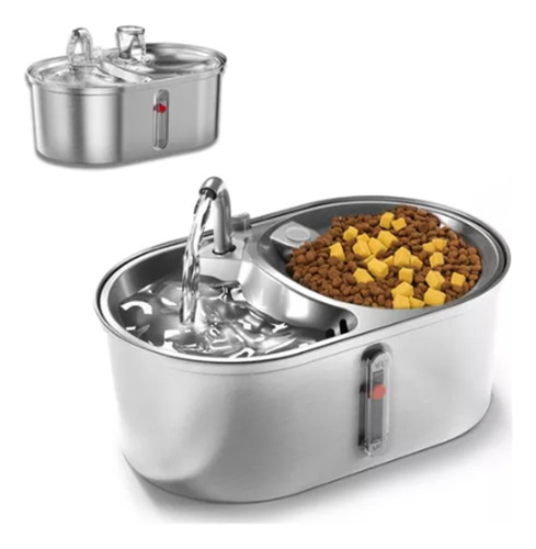 Fuente De Agua Y Comedero Gatos Acero Inoxidable Mascotas Plateado