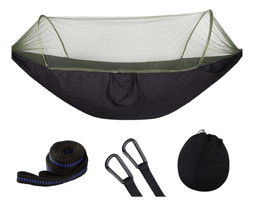 Hamaca Portatil Para Camping Aire Libre Con Mosquitera Verde Gris