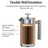 📝 Producto: Jarra De Café De Acero Inoxidable 350ml/800ml/1000ml, Prensa Plateado