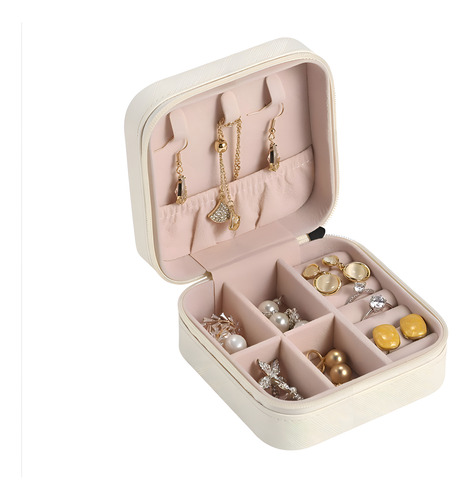 📝 Producto: Joyero En Cuero Ecológico Con Cremallera , Mide 10x10x5.5 Cm Color Blanco