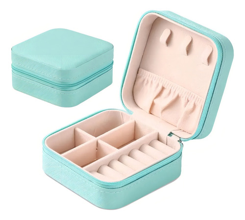 📝 Producto: Joyero Portátil Organizador Con Cremallera Funda De Viaje De Piel Color Azul Cielo