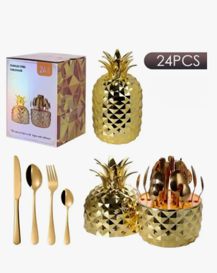 Material: Acero Inoxidable Cantidad de piezas: 24 Contenido: 1 x Juego de cubiertos moderno 1 x Estuche de Piña.
