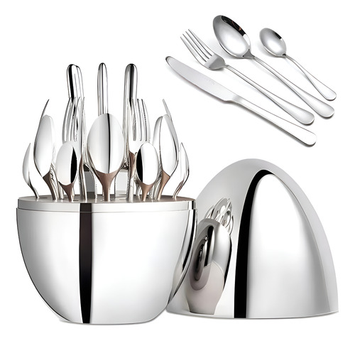 Juego De Cubiertos 24pcs Acero Inoxidable Gold Estuche Huevo Color Plateado