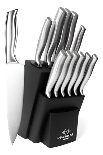 📝 Producto: Juego De Cuchillos En Acero 12pc Base De Madera Con Afilador Color Plateado