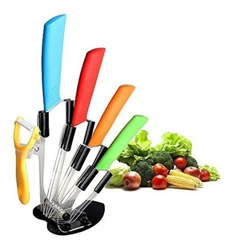 📝 Producto: Juego De Cuchillos Multicolor En Ceramica 5 Piezas Con Base Multicolor