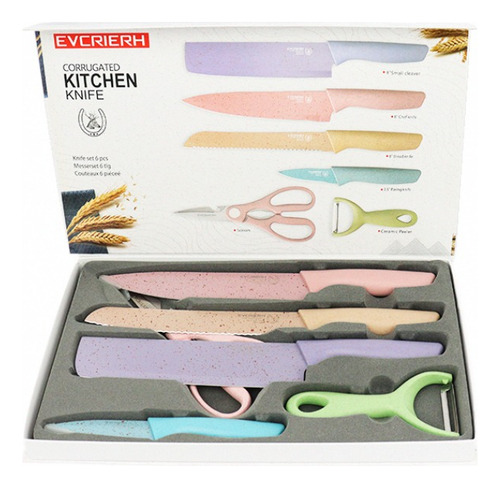 Juego De Cuchillos Multicolor Pastel Set Cuchillos 6 Piezas Multicolor Pastel