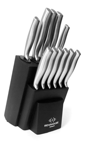 Juego De Cuchillos Renahouse Set 12 Piezas Base Afiladora Plateado