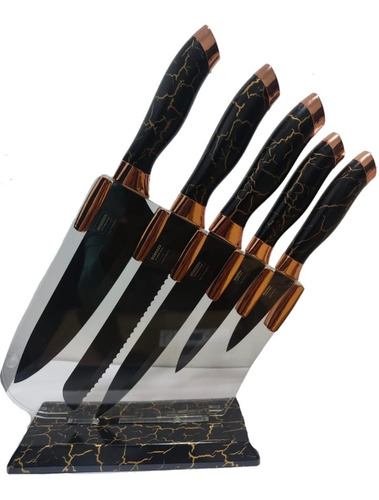 Juego De Cuchillos X6 Piezas Base Transparente Acero Inox Negro