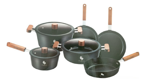 Juego Ollas Schaffhausen 9 Piezas Osaka Bateria En Marmol Negro Osaka