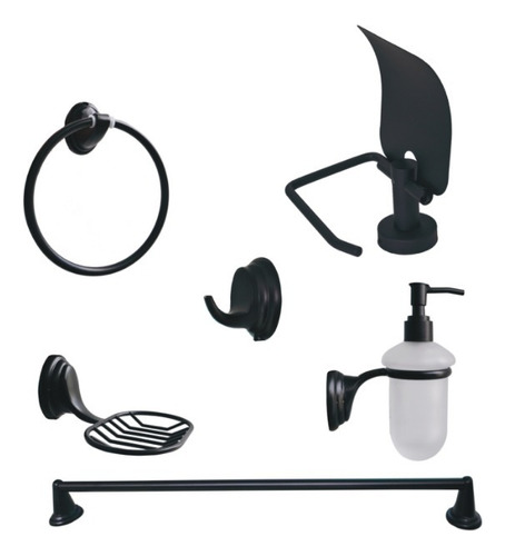 Juego Set De Accesorios Baño X6 Organizador Kit Negro Vidrio Negro