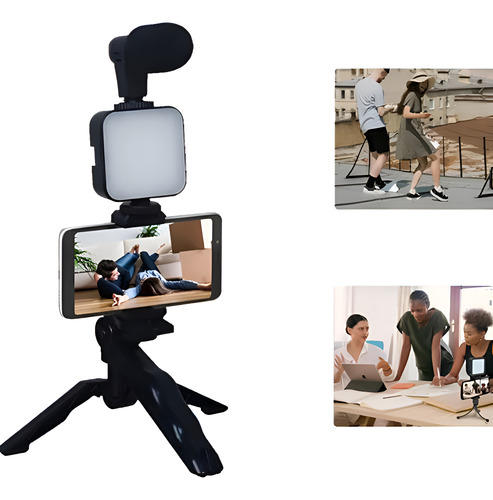 Kit Video Tripode Celular + Microfono Estabilizador Video Negro