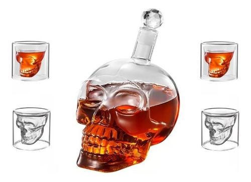 📝 Producto: Licorera Decantador Whiskey Calavera Cráneo Vidrio+ 4 Vasos Gris
