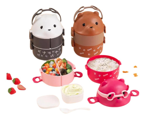 Lonchera Porta Comida De Oso Con Gafas Doble Capa