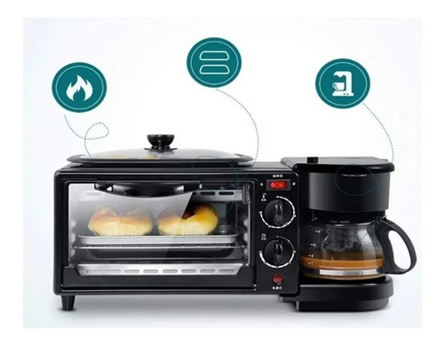 📝 Producto: Máquina 3 En 1 Cafetera Plancha Parrilla Horno Desayuno Elec Negro