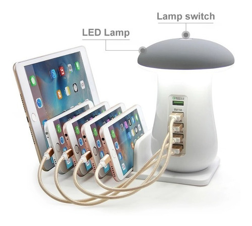 📝 Producto: Multi Puerto Usb Cargador Lampara Hongo Multi Cargador Blanco