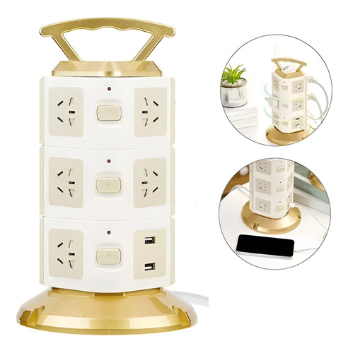📝 Producto: Multitoma Vertical 12 Tomas 2 Puertos Usb 2500w 3 Niveles Blanco Con Protección