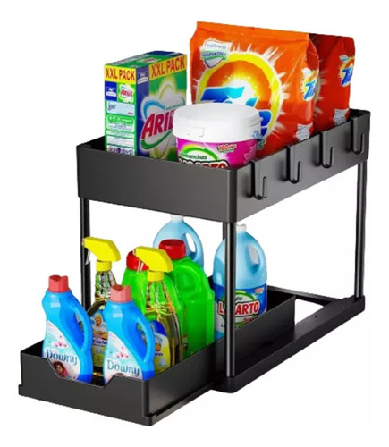 📝 Producto: Organizador Cocina 2 Niveles Extraible Rack Baño Gabinete Negro