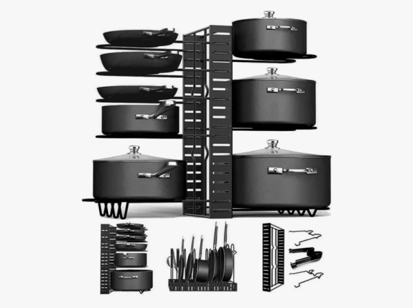 Organizador Ollas Sartenes 8 Niveles Acero Inoxidable Negro