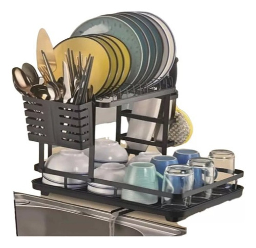 Organizador Y Escurridor De Platos Mesón Loza Cubiertos Negro