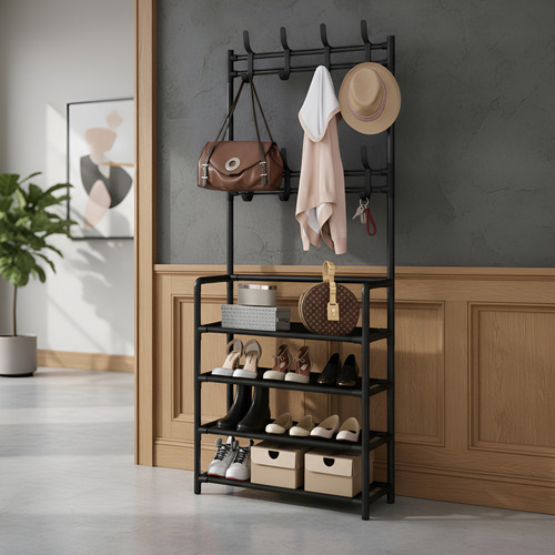 📝 Producto: Organizador Zapatero Perchero Fanova Negro Acero Metálico 4 Estantes 155cm