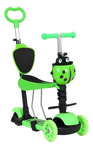 Patineta Scooter 3 En 1 Infantil Asiento Gt-4110b Juego Color Verde Claro Mariquita