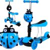 Patineta Scooter 5en1 Infantil Asiento Seguro Anticaida Rosa Color Rosa Chicle Mariquita Apoya Brazos