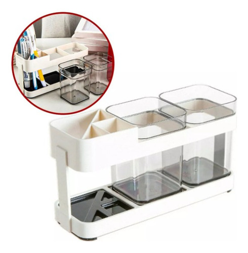 📝 Producto: Porta Cepillo De Dientes Organizador De Baño Doble Vaso Blanco
