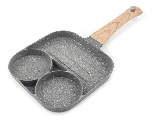 Sartén Antiadherente Multiusos 3 Puestos Plancha Para Asar Gris
