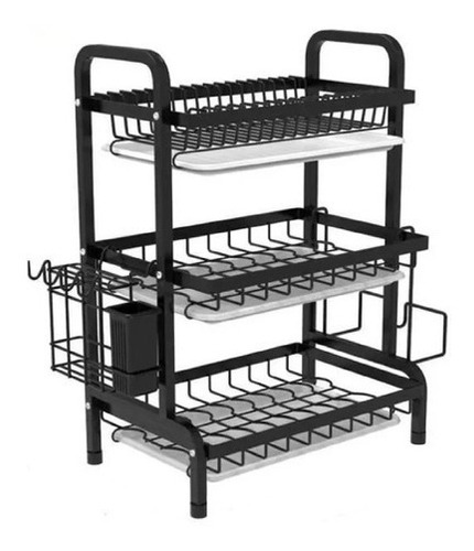 Secador Escurridor De Loza Platos 3 Niveles Lujoso O2 Color Negro